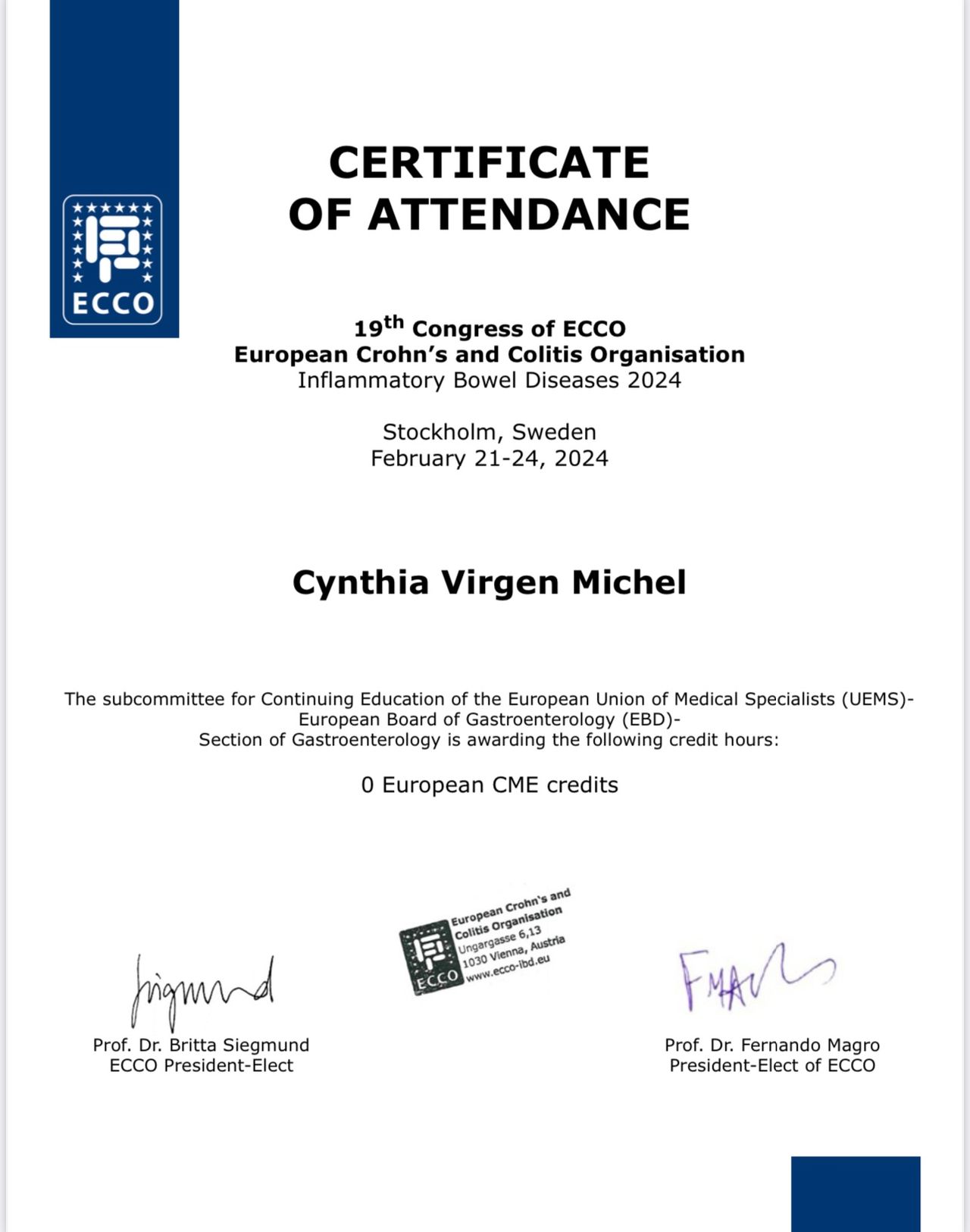 - Master Enfermedades Inflamatorias para Medicina Digestiva, Universidad de Valencia CEU-CH,2024