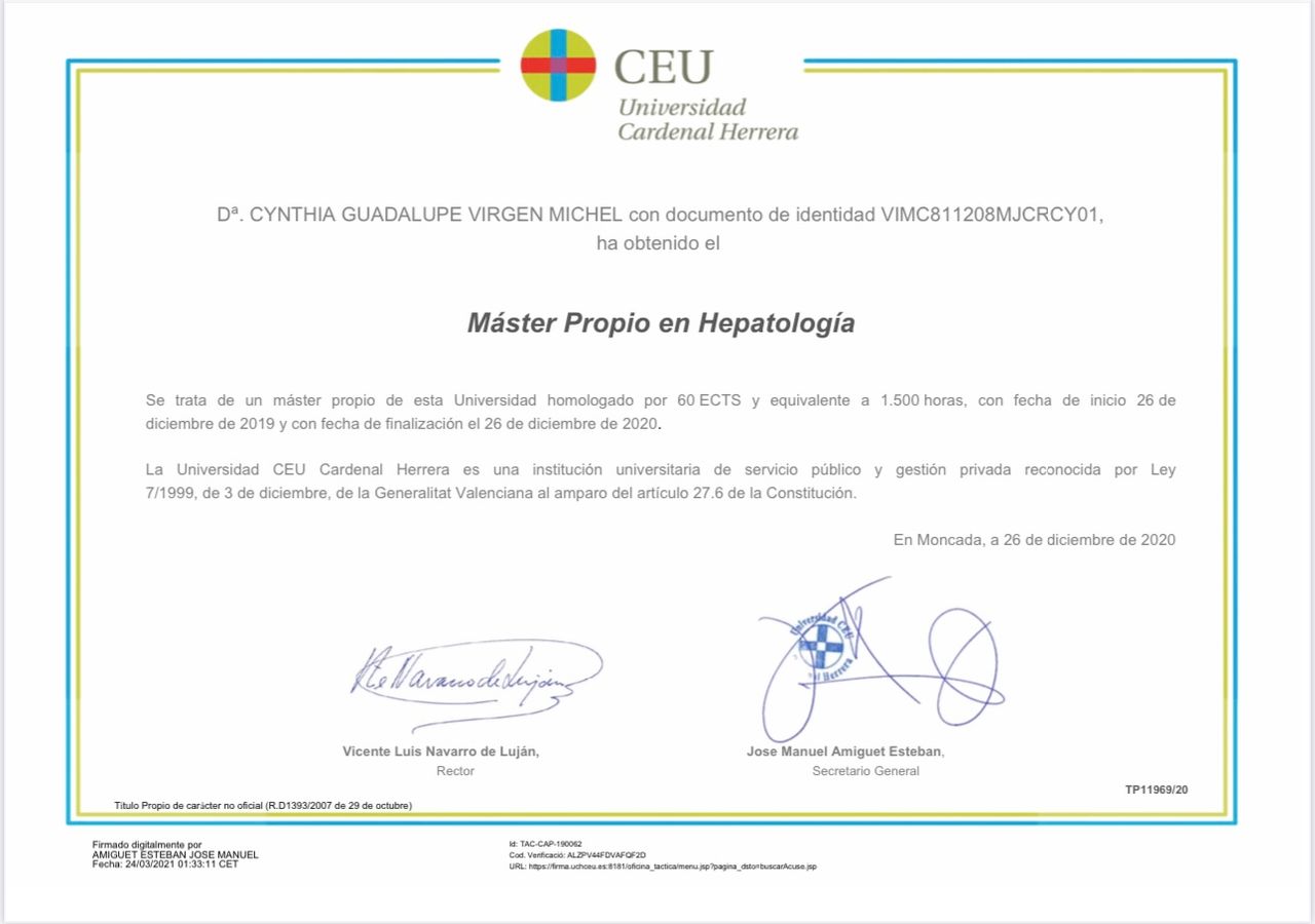 - Master Hepatología, Universidad Valencia CEU-CH, 2020
